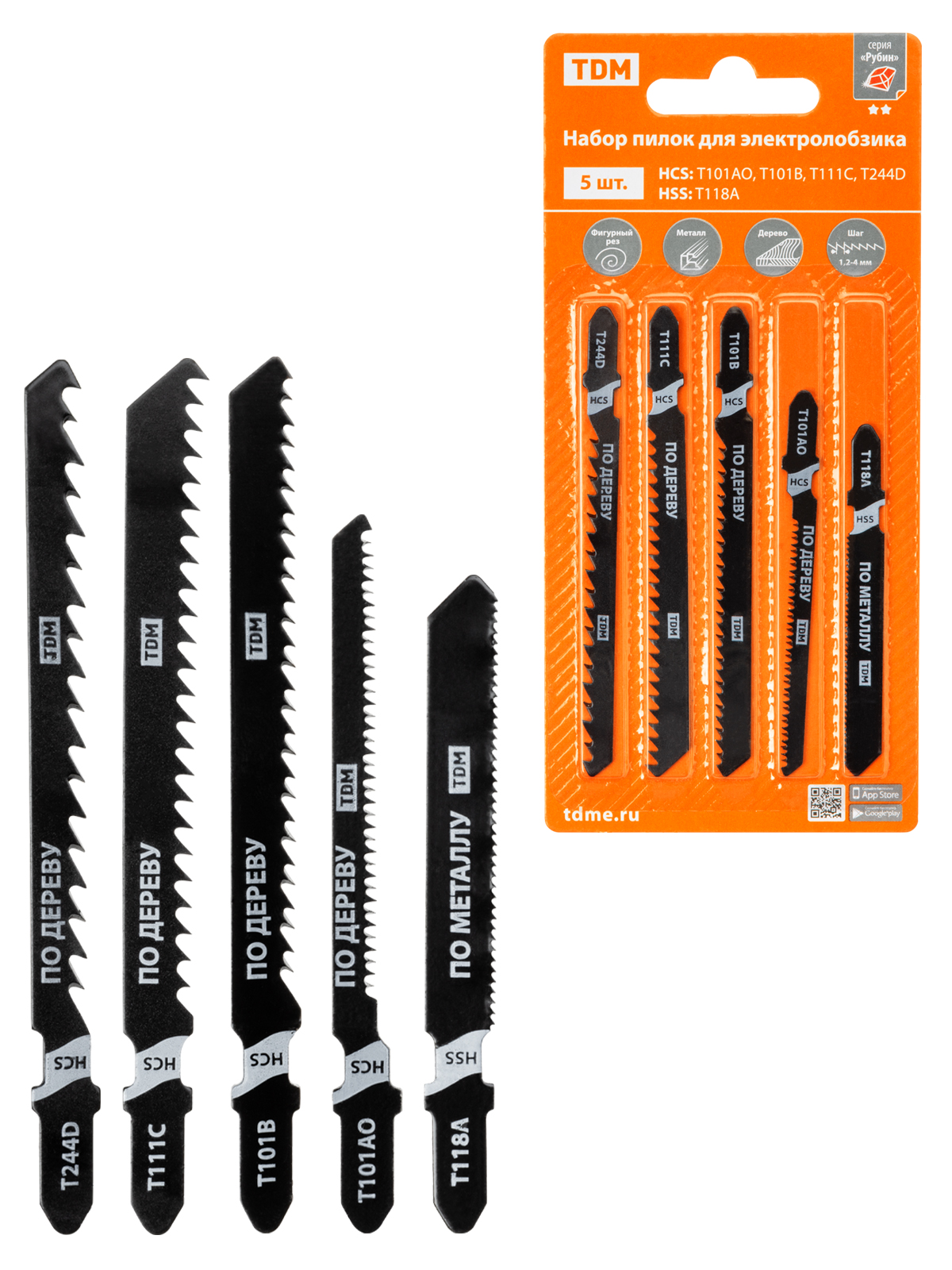 Набор пилок для электролобзика по дер: T101AO,T101B,T111C,244D, по метал. T118A, 5 шт, "Рубин", TDM