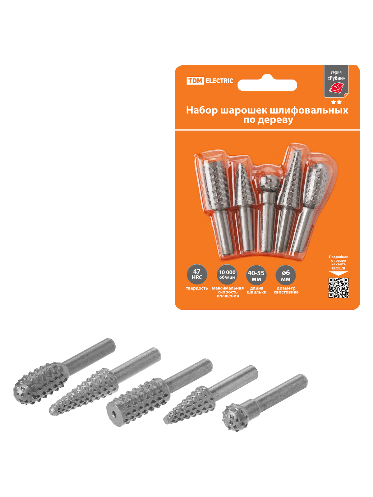 Наименование: Набор шарошек шлифовальных, рашпильных, ? 6 мм, L 40-55 мм, по дереву, 5 шт, "Рубин" TDM