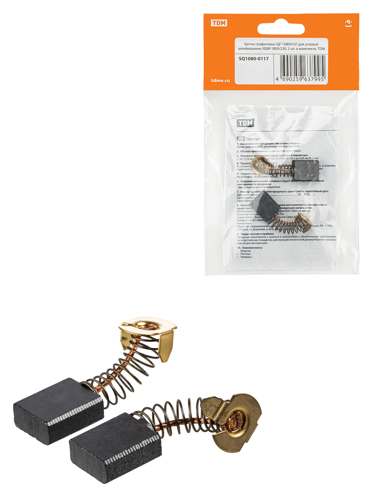 Наименование: Щетки графитовые ЩГ-10800107 для угловой шлифмашины УШМ 1800/230, 2 шт. в комплекте, TDM