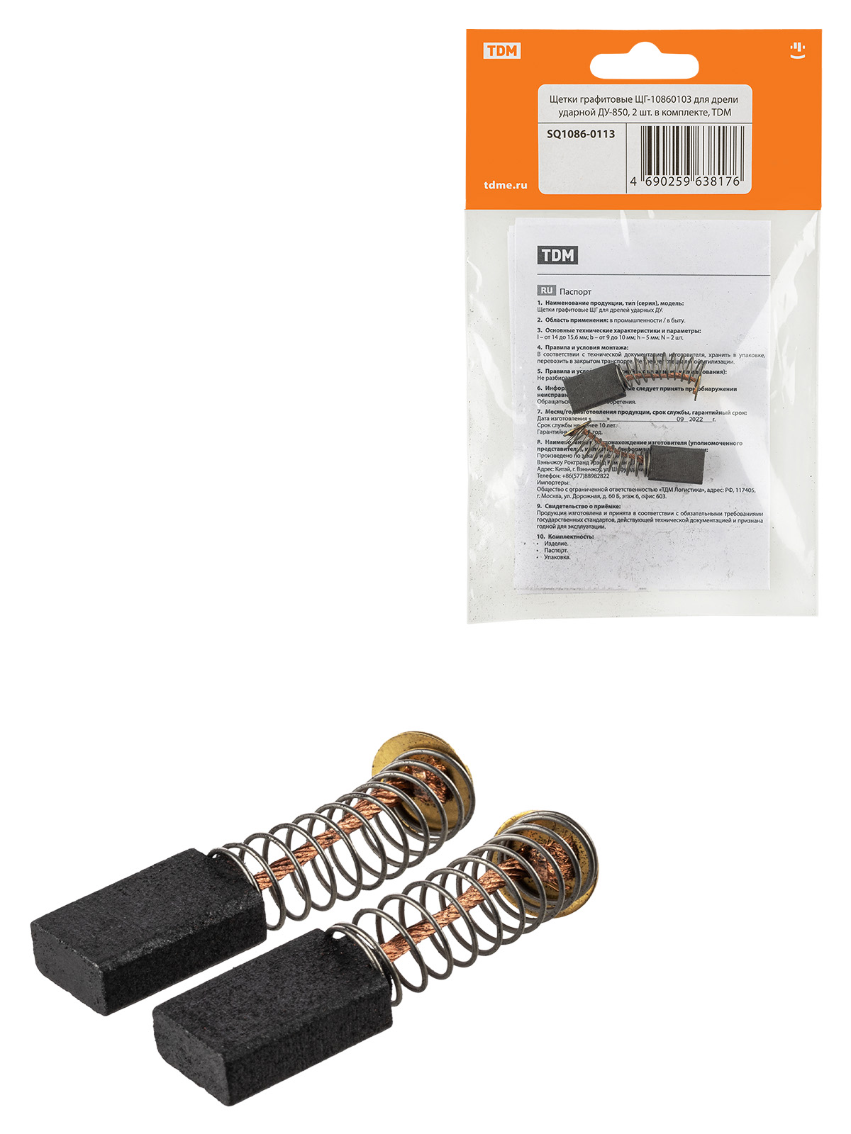 Наименование: Щетки графитовые ЩГ-10860103 для дрели ударной ДУ-850, 2 шт. в комплекте, TDM