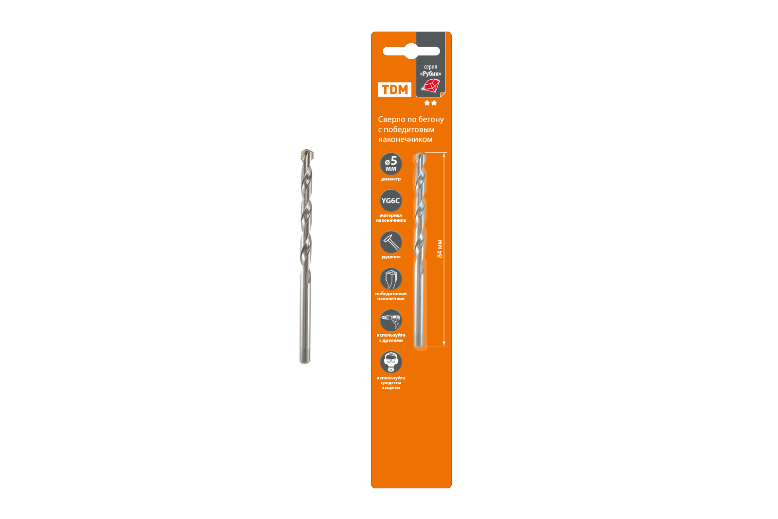 Наименование: Сверло по бетону, ударное, 5?84 мм, победит. након, цилиндр. хвост, блистер 1 шт, "Рубин" TDM