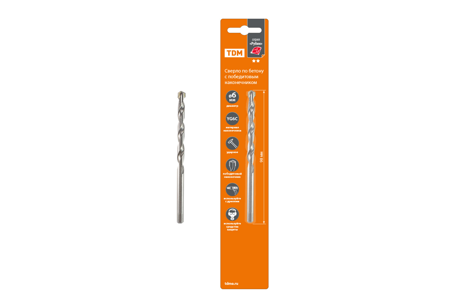 Наименование: Сверло по бетону, ударное, 6?98 мм, победит. након, цилиндр. хвост, блистер 1 шт,"Рубин" TDM