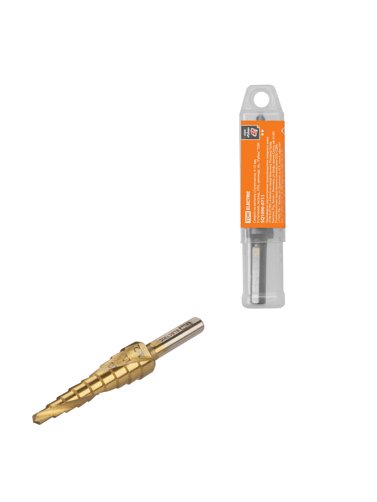 Наименование: Сверло по металлу ступенчатое, 4-12 мм, 9 ступеней, нитрид., HSS, цилиндр. хв., "Рубин" TDM