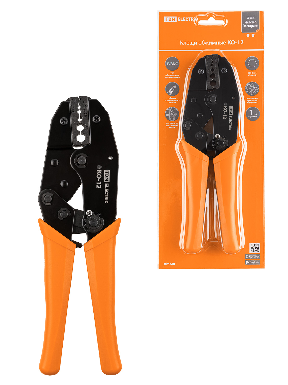 Наименование: Клещи обжимные КО-12, обжим F и BNC разъемов (RG-58, RG-59, RG-62, RG-174, FO), "МастерЭлектрик" TDM
