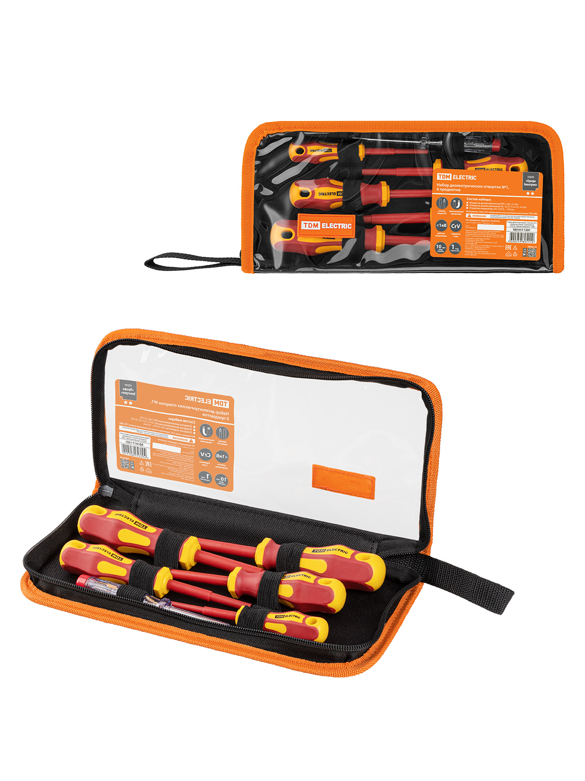 Наименование: Набор диэлектрических отверток №1, тканевый пенал, 6 предметов, 1000 В, «ПрофиЭлектрик» TDM