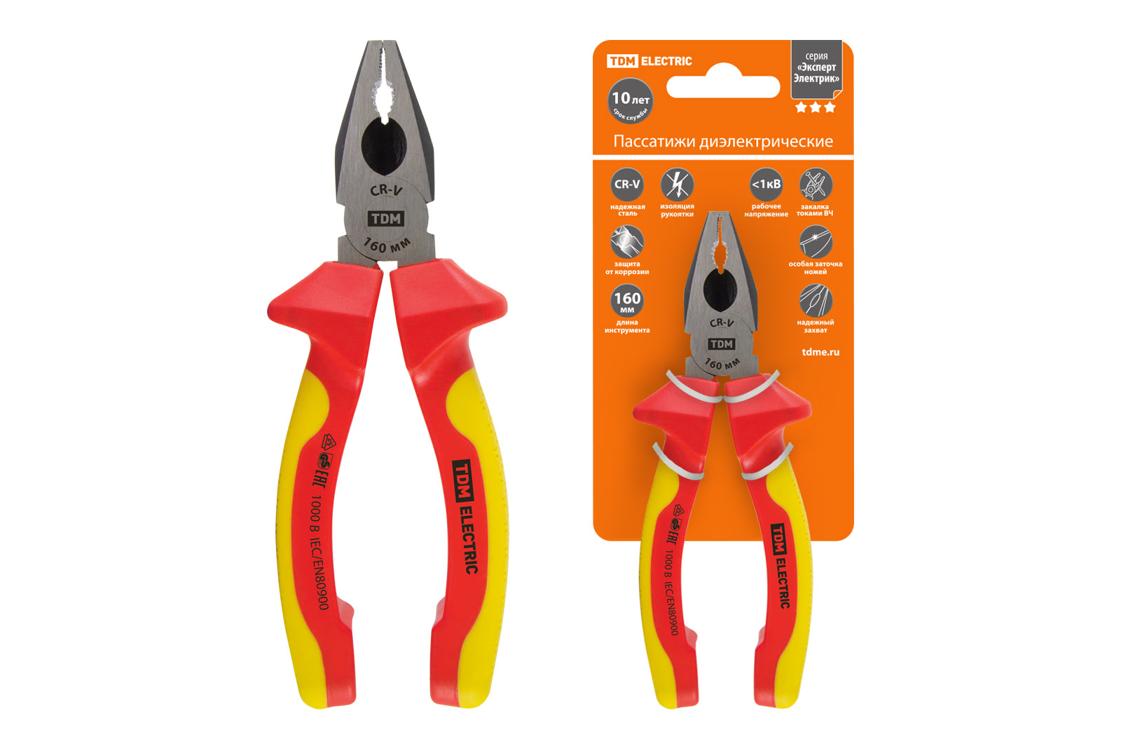 Пассатижи диэлектрические, 160 мм, 1000 В, CR-V, «ЭкспертЭлектрик» TDM