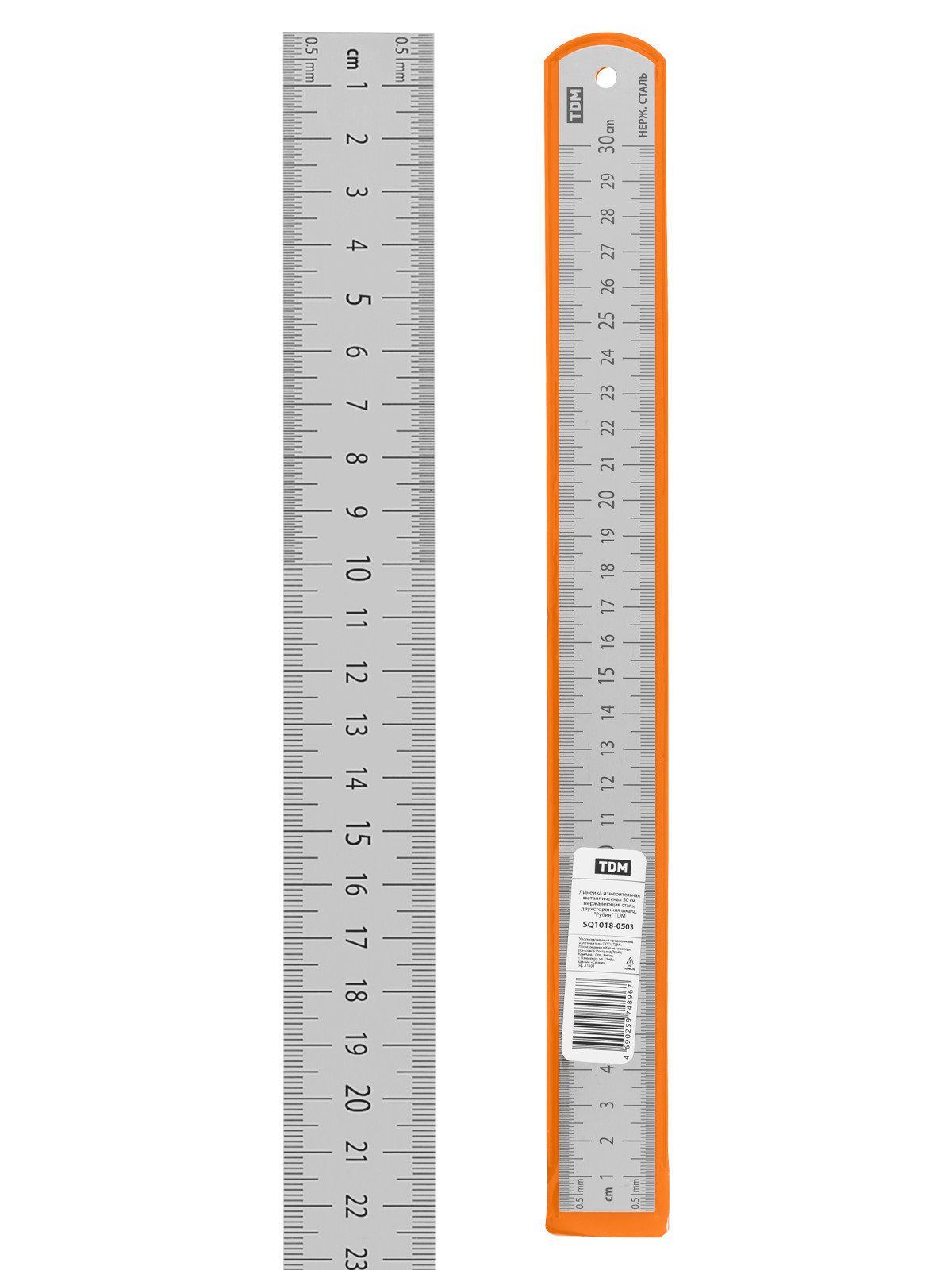 Наименование: Линейка измерительная металлическая 30 см, нержавеющая сталь, двухсторонняя шкала, "Рубин" TDM