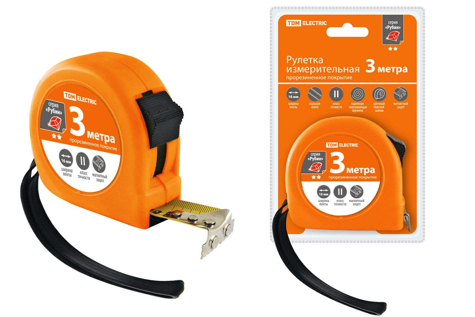 Наименование: Рулетка, длина 3 м, стальная лента, ширина 16 мм, прорезиненное покрытие, магнит, "Рубин" TDM