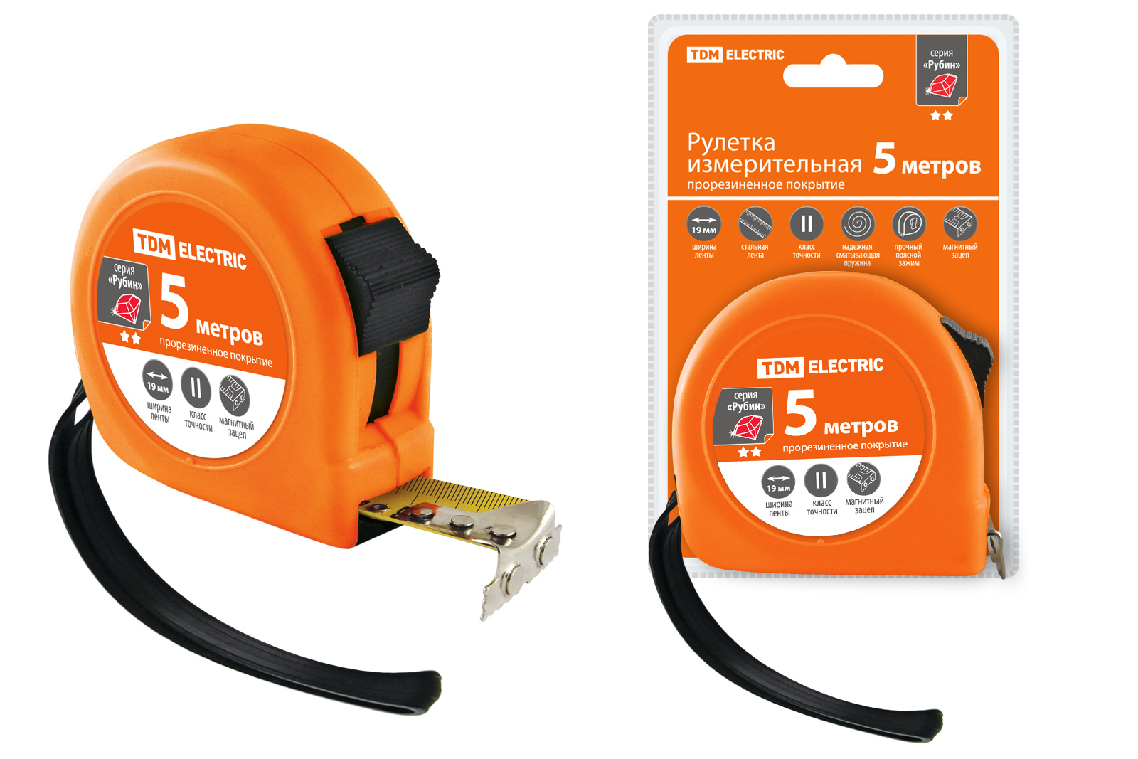 Наименование: Рулетка, длина 5 м, стальная лента, ширина 19 мм, прорезиненное покрытие, магнит, "Рубин" TDM