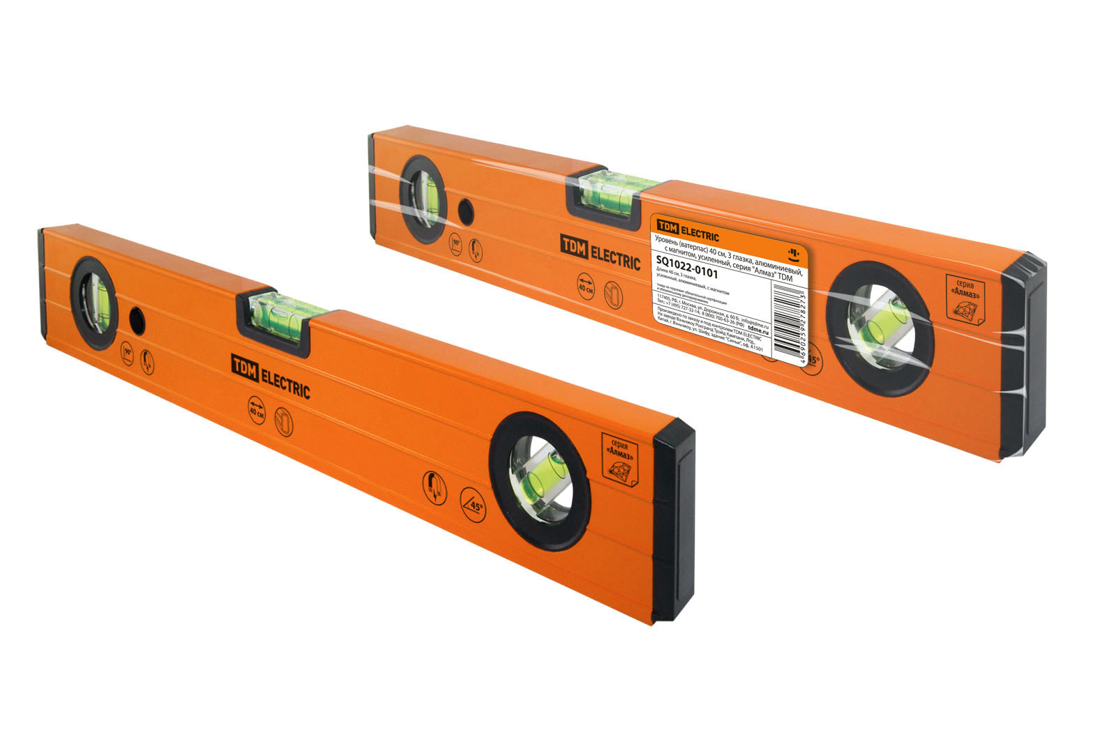Наименование: Уровень (ватерпас) 40 см, 3 глазка, алюминиевый, с магнитом, усиленный, серия "Алмаз" TDM
