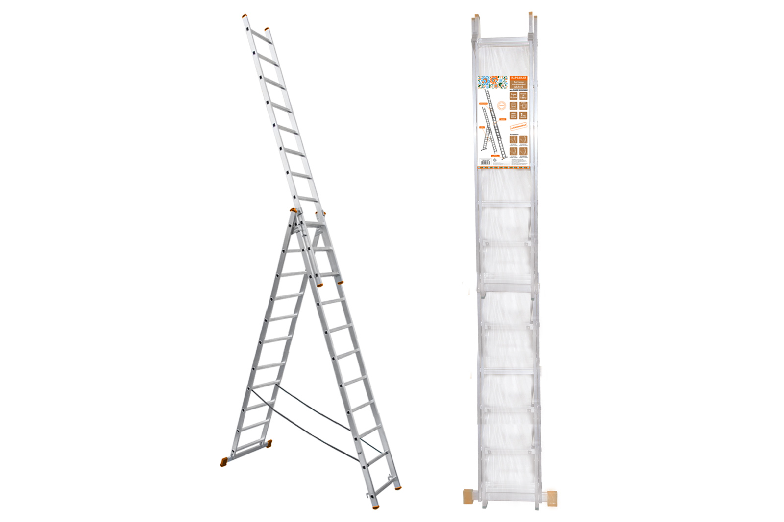 Лестница алюминиевая, ЛА3х12, 3х секционная х 12 ступеней, h=7870 мм, Народная