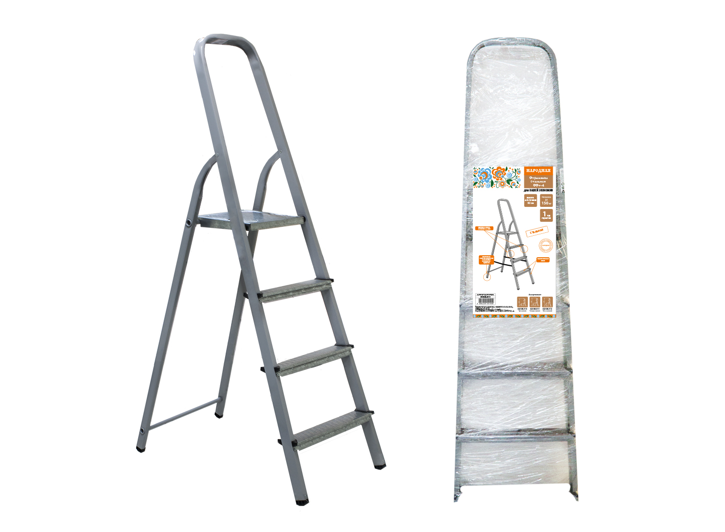 Наименование: Стремянка стальная ССт-4, 4 ступени с цинковым покрытием, стальной профиль, h=820 мм, Народная