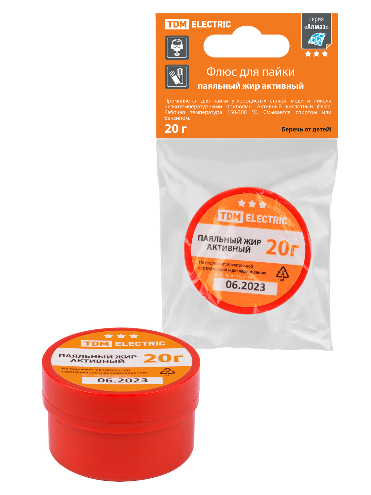 Наименование: Флюс для пайки, паяльный жир активный, 20 г, банка, инд. упаковка, серия "Алмаз" TDM