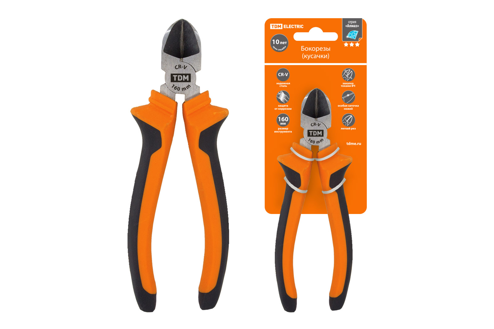 Наименование: Бокорезы (кусачки), с двухкомпонентными рукоятками, CR-V сталь, 160 мм, серия "Алмаз" TDM