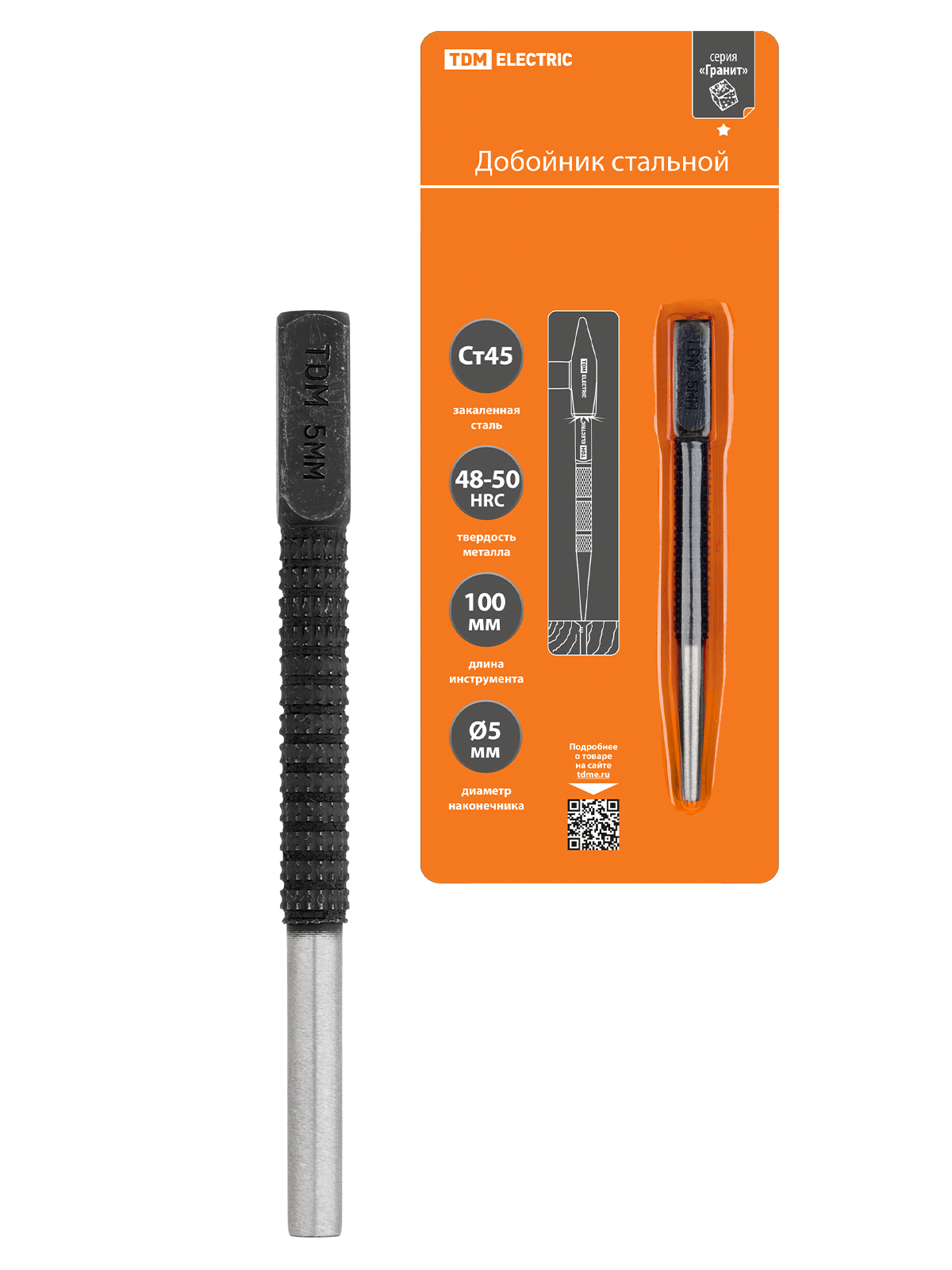 Наименование: Добойник ?5 мм, длина 100 мм, углеродистая сталь, блистер "Гранит" TDM