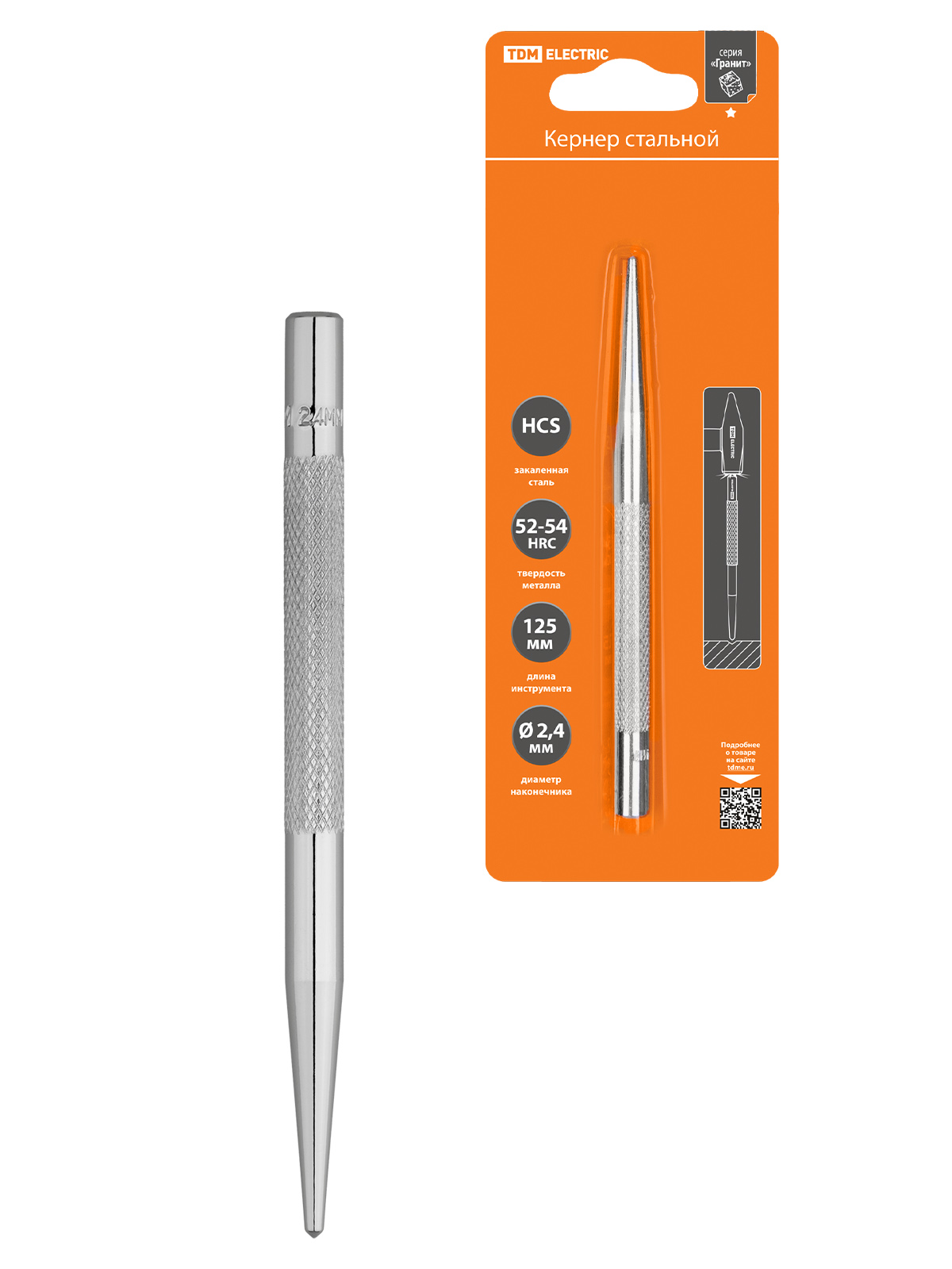 Наименование: Кернер ?2,4 мм, длина 125 мм, высокоуглеродистая сталь, блистер "Гранит" TDM