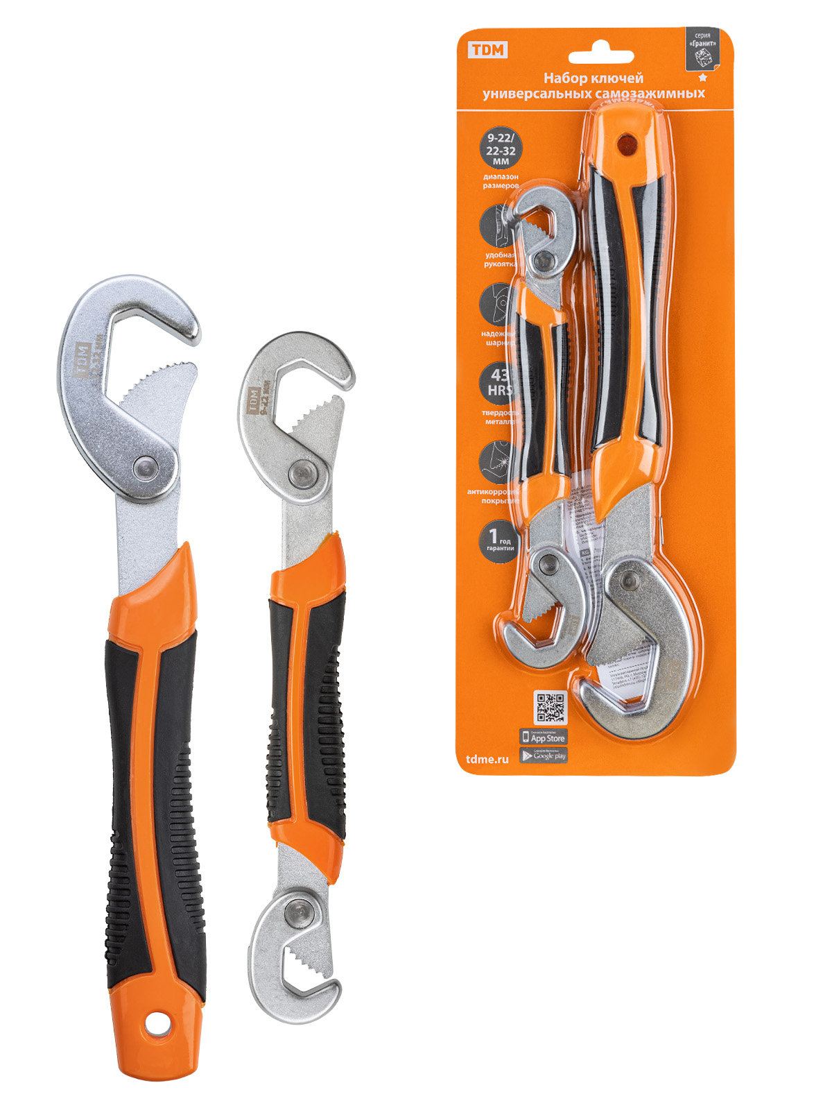 Наименование: Набор ключей универсальных самозажимных 9-22/22-32 мм, прорезиненные рукоятки, блистер, "Гранит" TDM