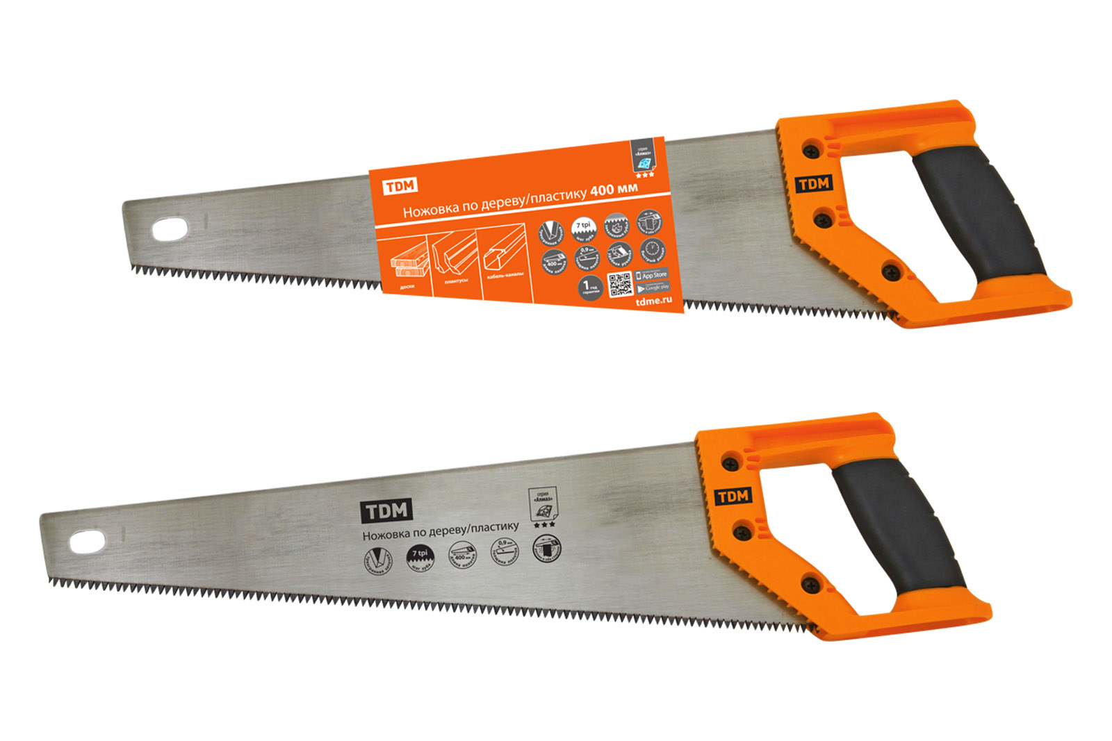 Наименование: Ножовка по дереву/пластику 400 мм, закаленные зубья, прорезиненная рукоятка, "Алмаз", TDM