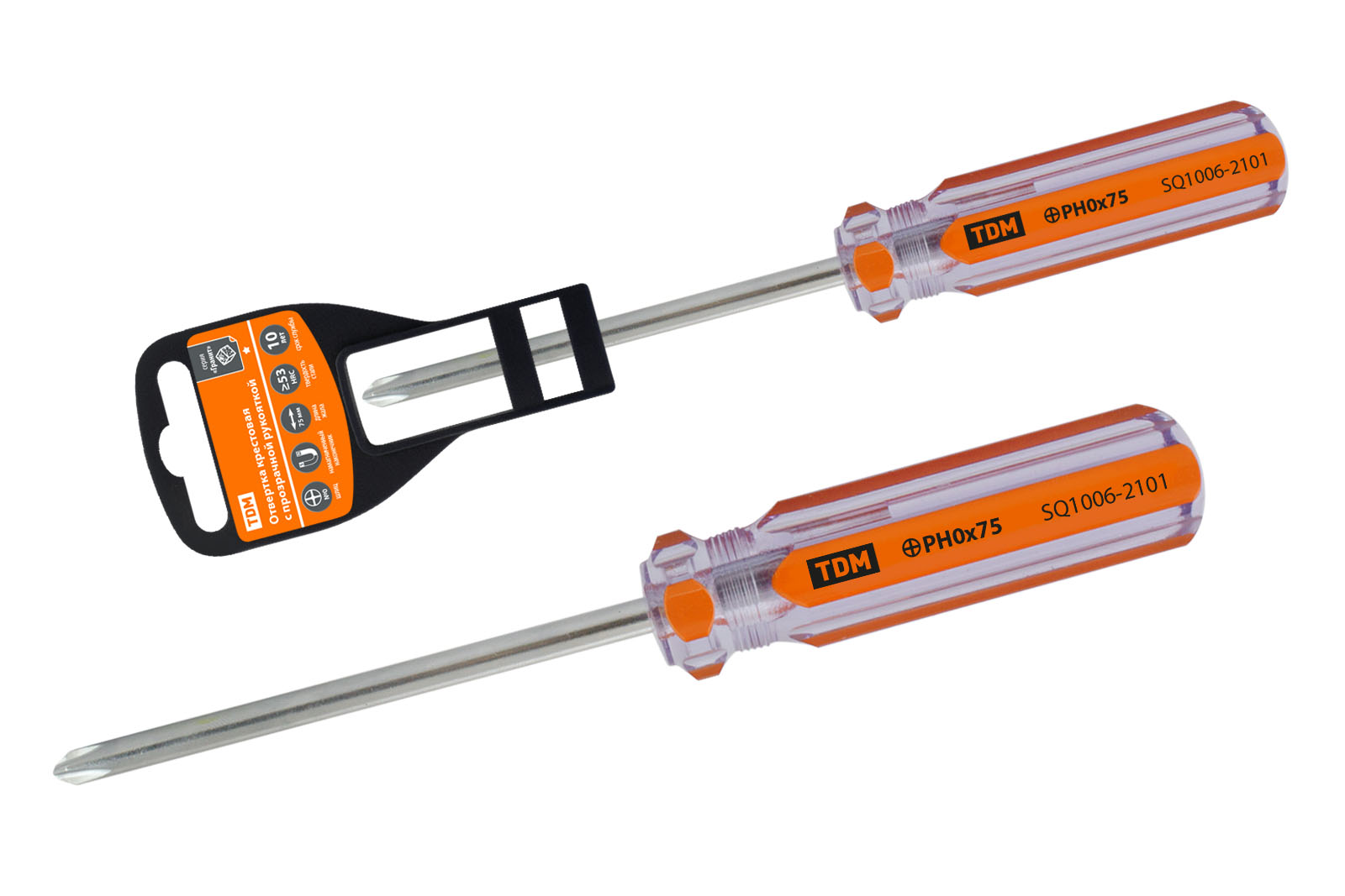 Наименование: Отвертка крестовая, прозрачная рукоятка, углеродистая сталь, тип PH0 x 75 мм, серия "Гранит" TDM