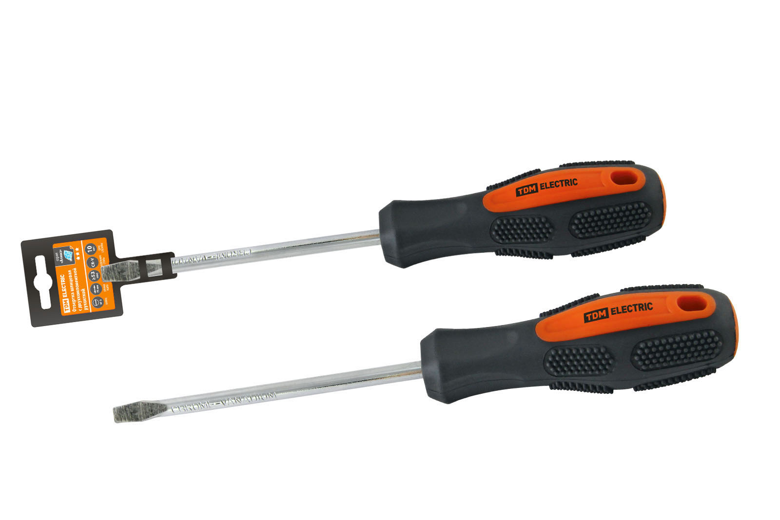 Отвертка шлицевая двухкомпонентная, CR-V тип SL3.0x75, серия "Алмаз" TDM