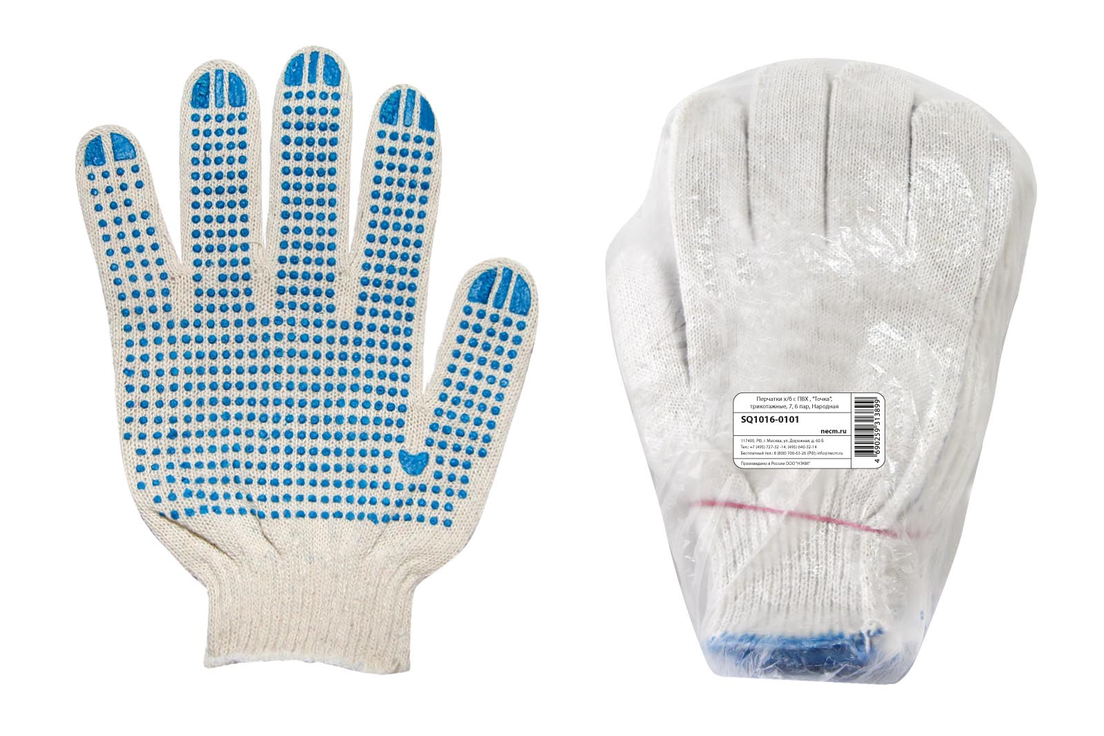 Наименование: Перчатки х/б с ПВХ , "Точка", трикотажные, 7, 6 пар, Народная