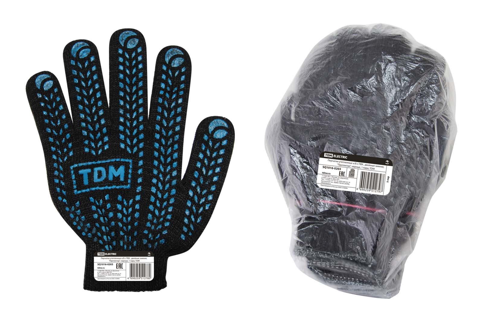Наименование: Перчатки утепленные х/б с ПВХ, двойные зимние, "Протектор", черные, 1 пара, TDM