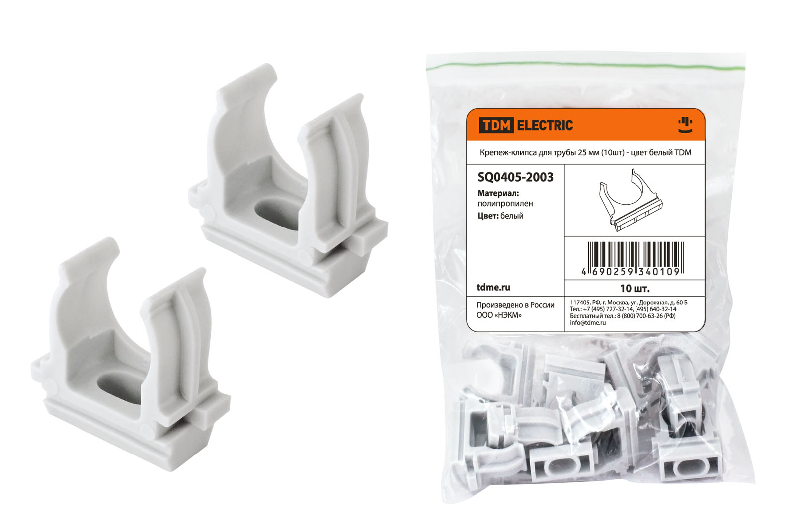 Наименование: Крепеж-клипса для трубы 25 мм (10шт) - цвет белый TDM