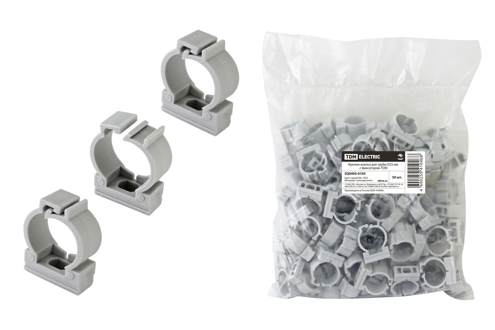 Наименование: Крепеж-клипса для трубы D25 мм с фиксатором TDM