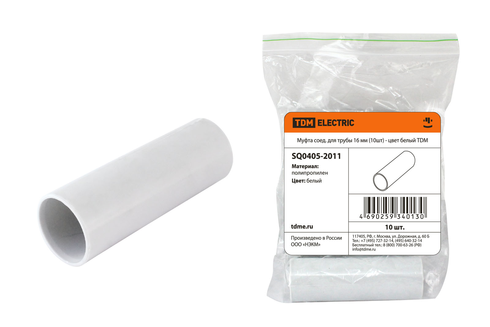 Наименование: Муфта соед. для трубы 16 мм (10шт) - цвет белый TDM