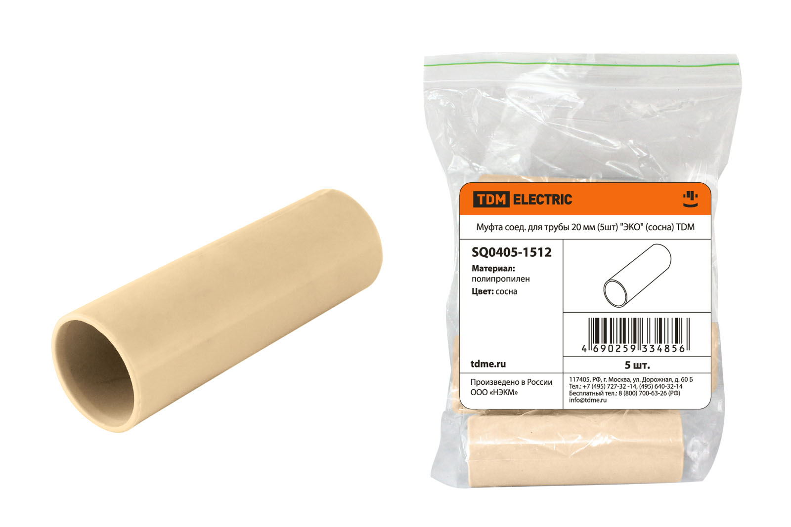 Наименование: Муфта соед. для трубы 20 мм (5шт) "ЭКО" (сосна) TDM