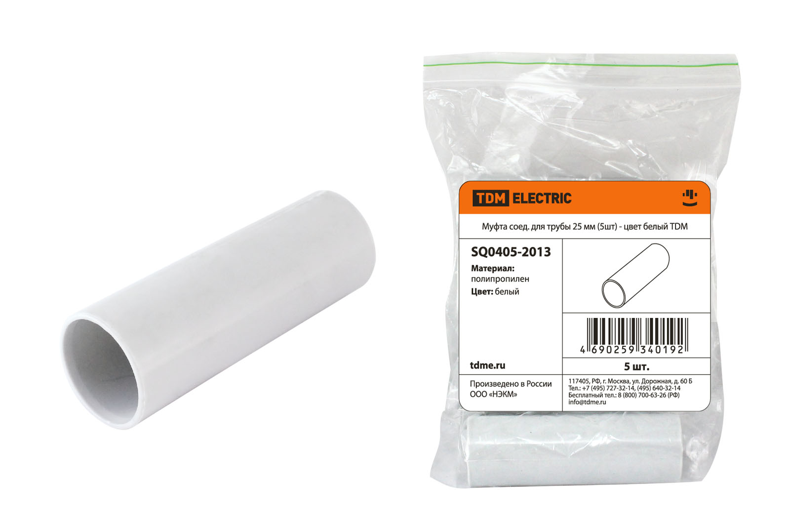 Наименование: Муфта соед. для трубы 25 мм (5шт) - цвет белый TDM