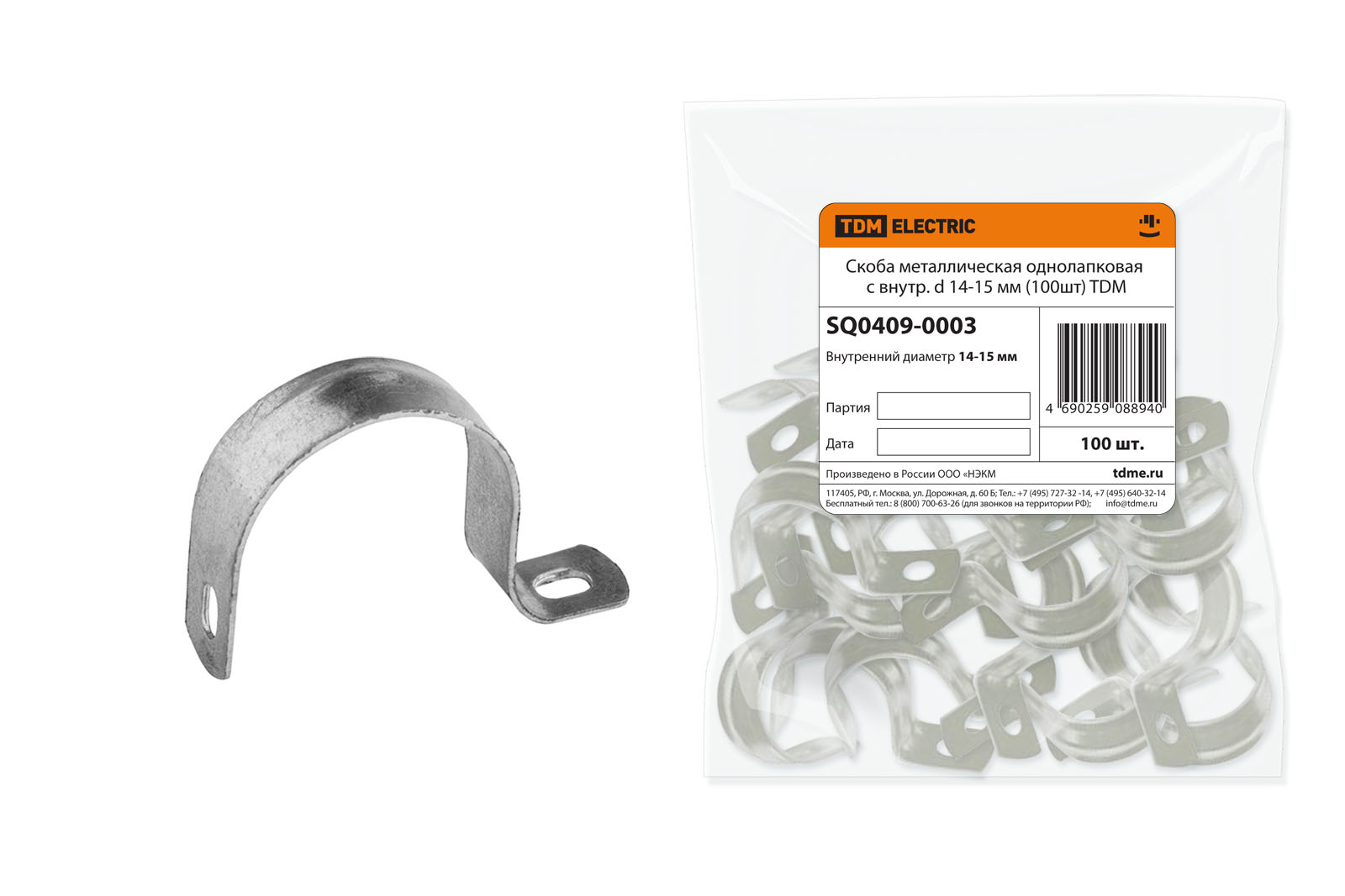Наименование: Скоба металлическая однолапковая с внутр. d 14-15 мм (100шт) TDM