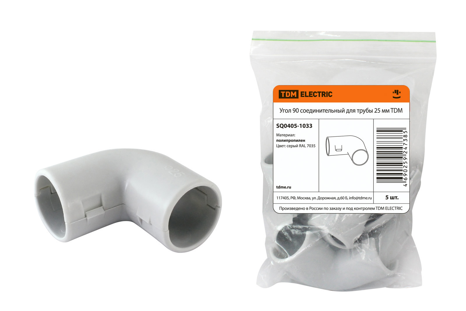 Наименование: Угол 90 соед. для трубы 25 мм (5шт) TDM
