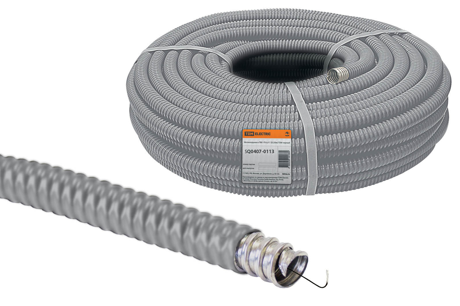 Наименование: Металлорукав в ПВХ-изоляции РЗ-Ц-П 15 серый с протяжкой (25м) TDM