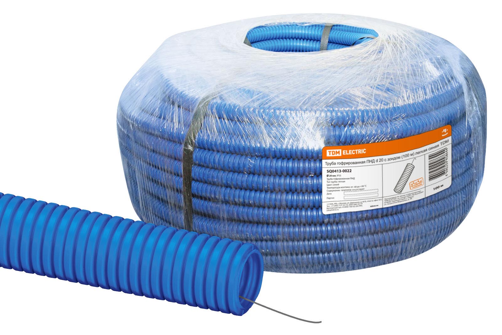 Наименование: Труба гофрированная ПНД d 20 с зондом (100 м) легкая синяя TDM