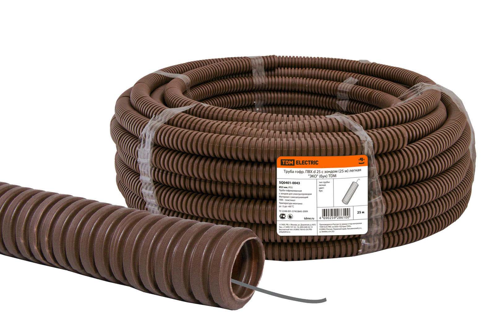 Наименование: Труба гофрированная ПВХ d 25 с зондом (25 м) легкая "ЭКО" (бук) TDM