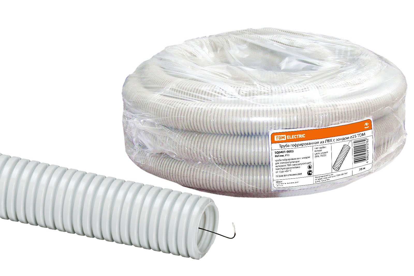 Наименование: Труба гофрированная ПВХ d 25 с зондом (75 м) легкая TDM
