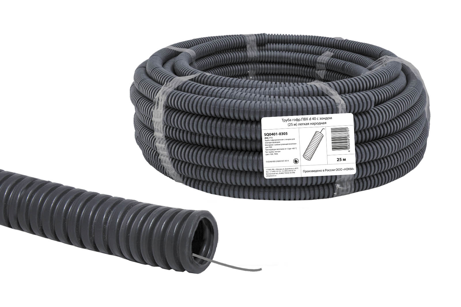 Наименование: Труба гофрированная ПВХ d 40 с зондом (25 м) легкая Народная