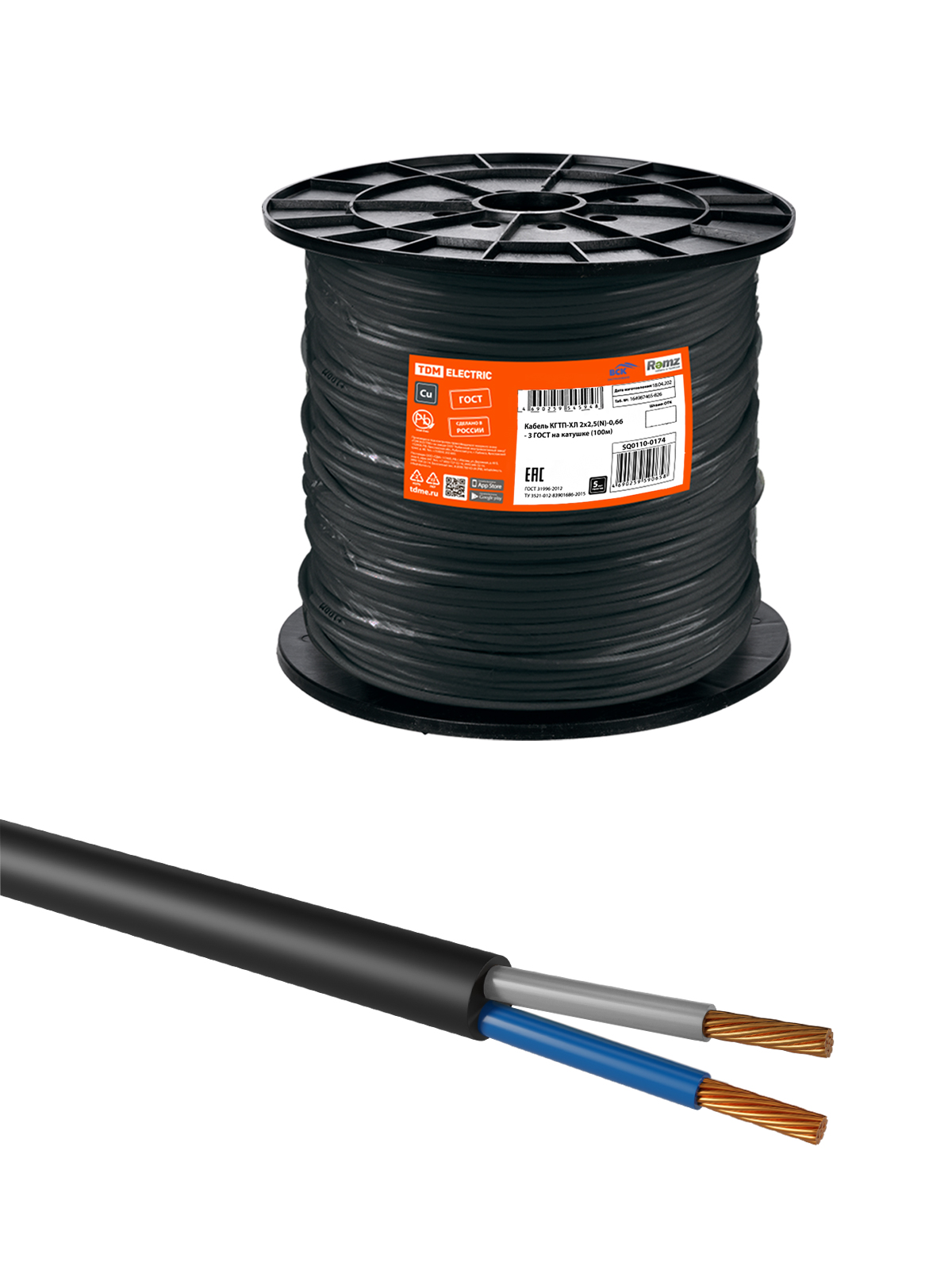 Наименование: Кабель КГТП-ХЛ 2х2,5(N)-0,66 ГОСТ на катушке (100м) TDM