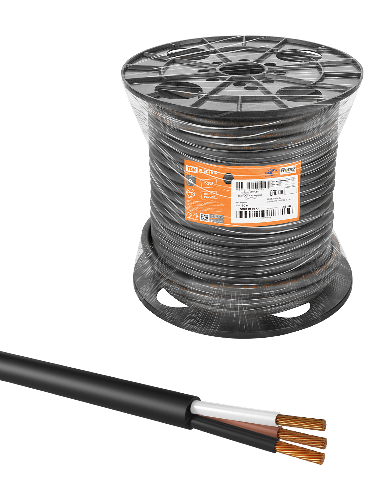 Кабель КГТП-ХЛ 3х4-0,66 ГОСТ на катушке (50м) TDM