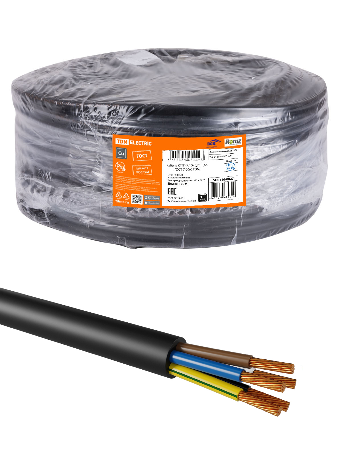 Наименование: Кабель КГТП-ХЛ 5х0,75(N,PE)-0,66 ГОСТ (100м) TDM