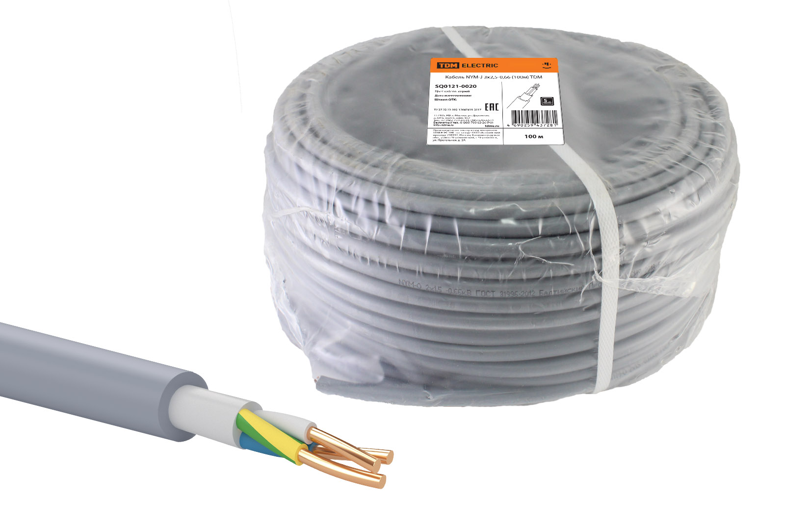 Наименование: Кабель NYM-J 3х2,5-0,66 (100м) TDM