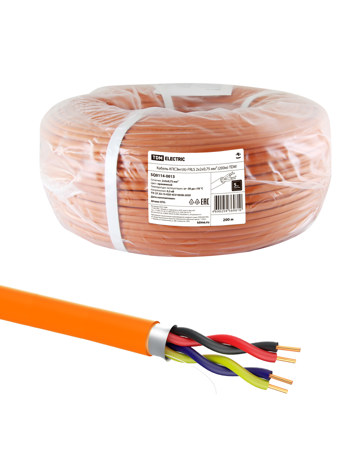 Наименование: Кабель КПСЭнг(А)-FRLS 2х2х0,75 мм? (200м) TDM