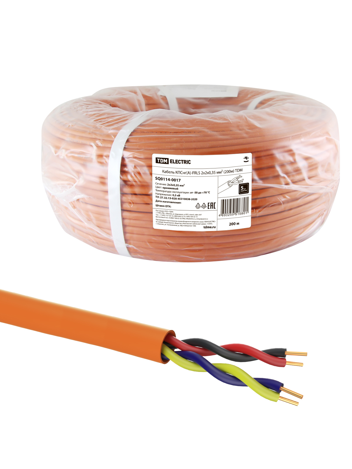 Наименование: Кабель КПСнг(А)-FRLS 2х2х0,35 мм? (200м) TDM