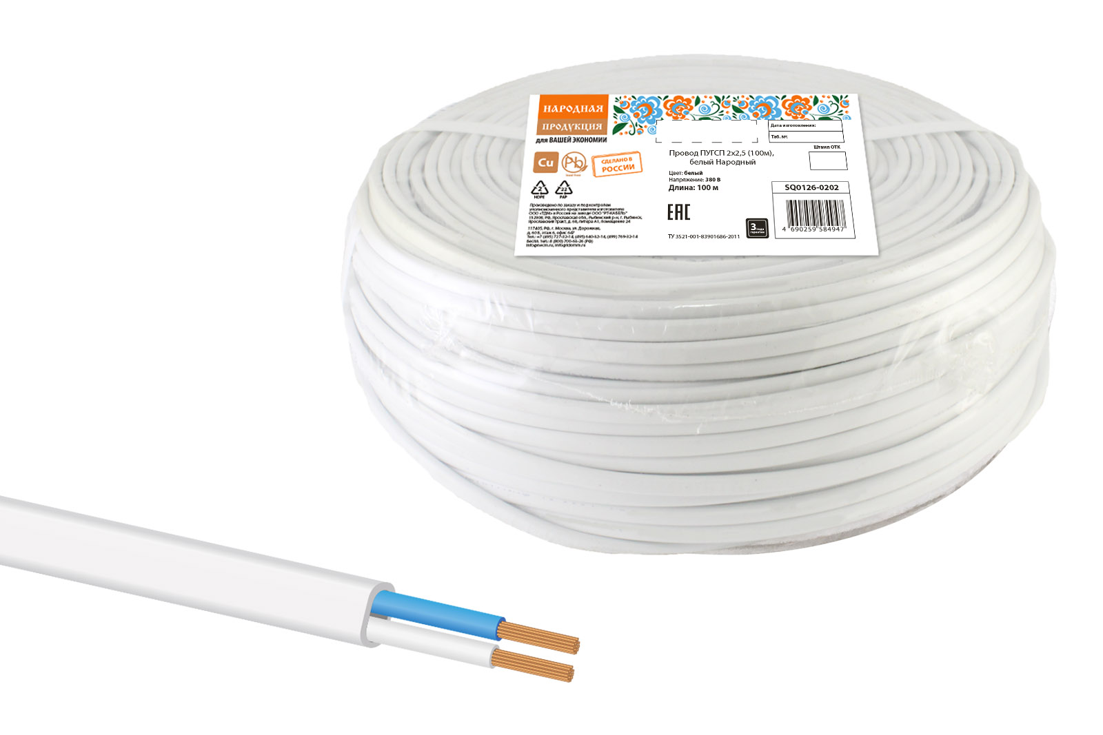 Наименование: Провод ПУГСП 2х2,5 (100м), белый Народный
