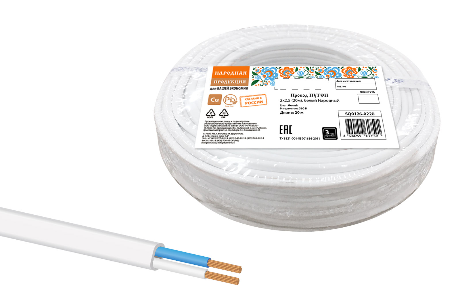 Провод ПУГСП 2х2,5 (20м), белый Народный