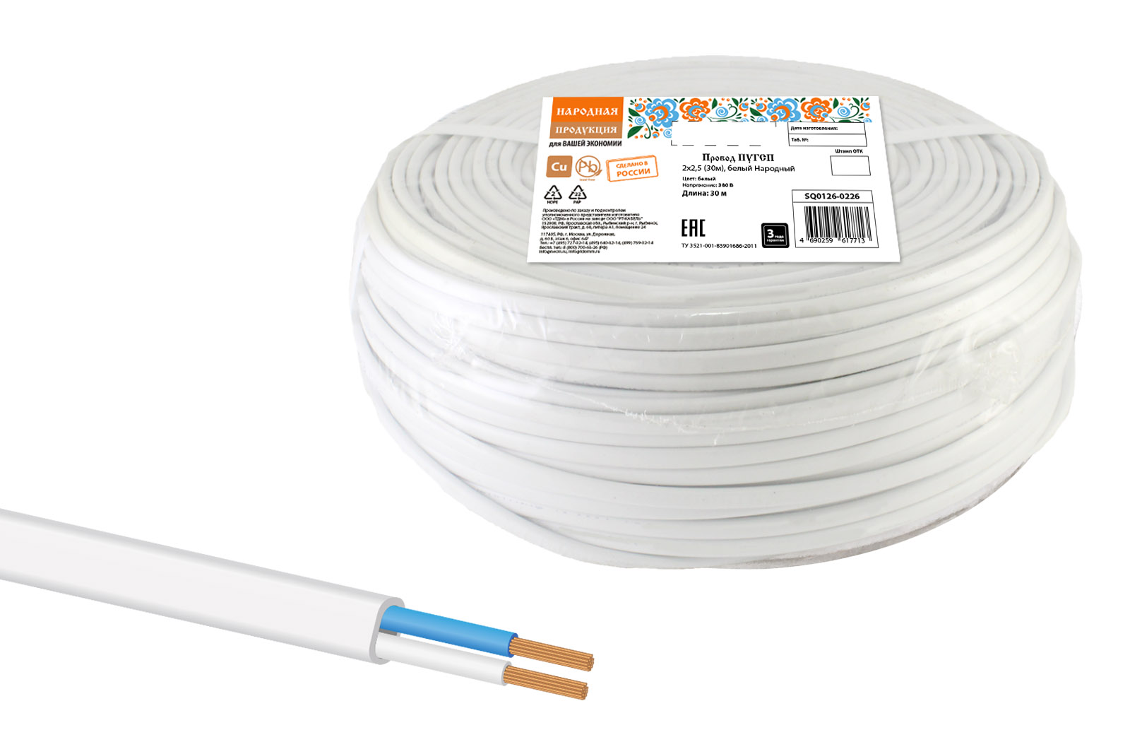 Провод ПУГСП 2х2,5 (30м), белый Народный