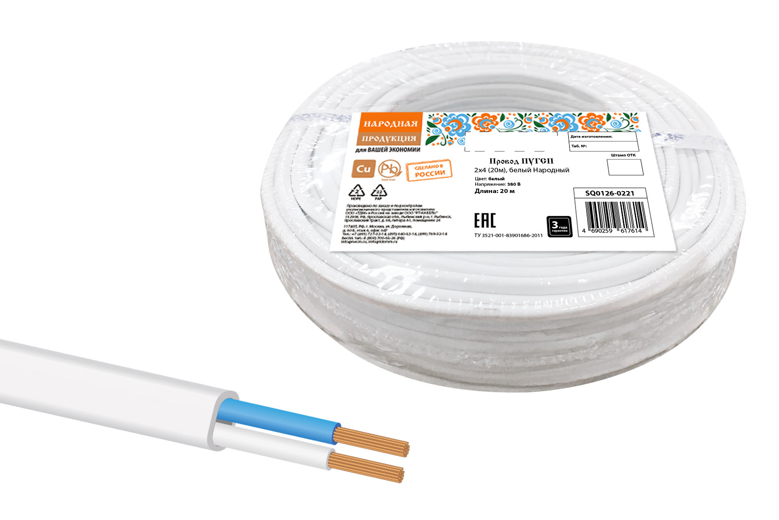 Наименование: Провод ПУГСП 2х4 (20м), белый Народный
