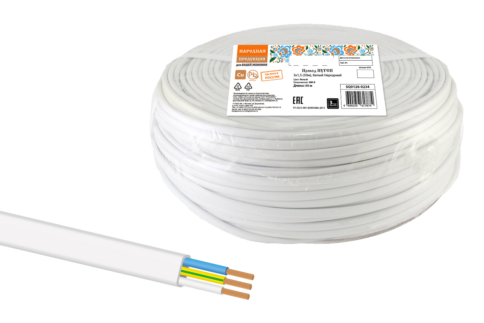 Провод ПУГСП 3х1,5 (50м), белый Народный
