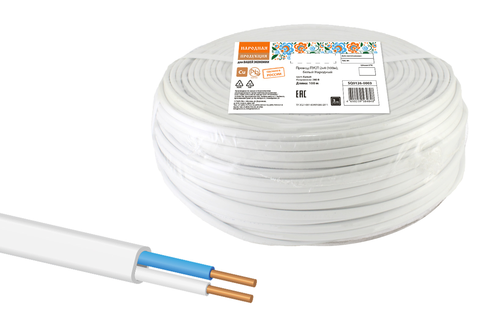 Наименование: Провод ПУСП 2х4 (100м), белый Народный